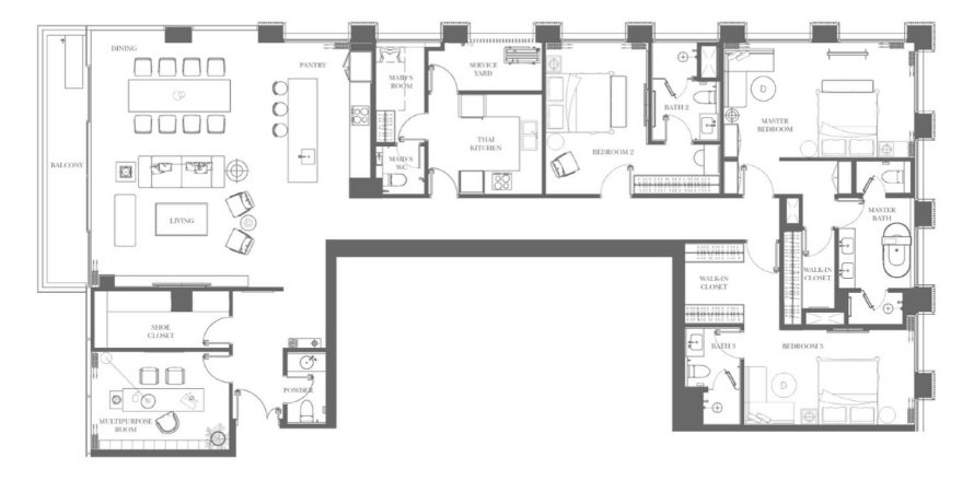 Apartment floor plan «Three-Bedroom Premier», 3 bedrooms in InterContinental Residences Bangkok Asoke