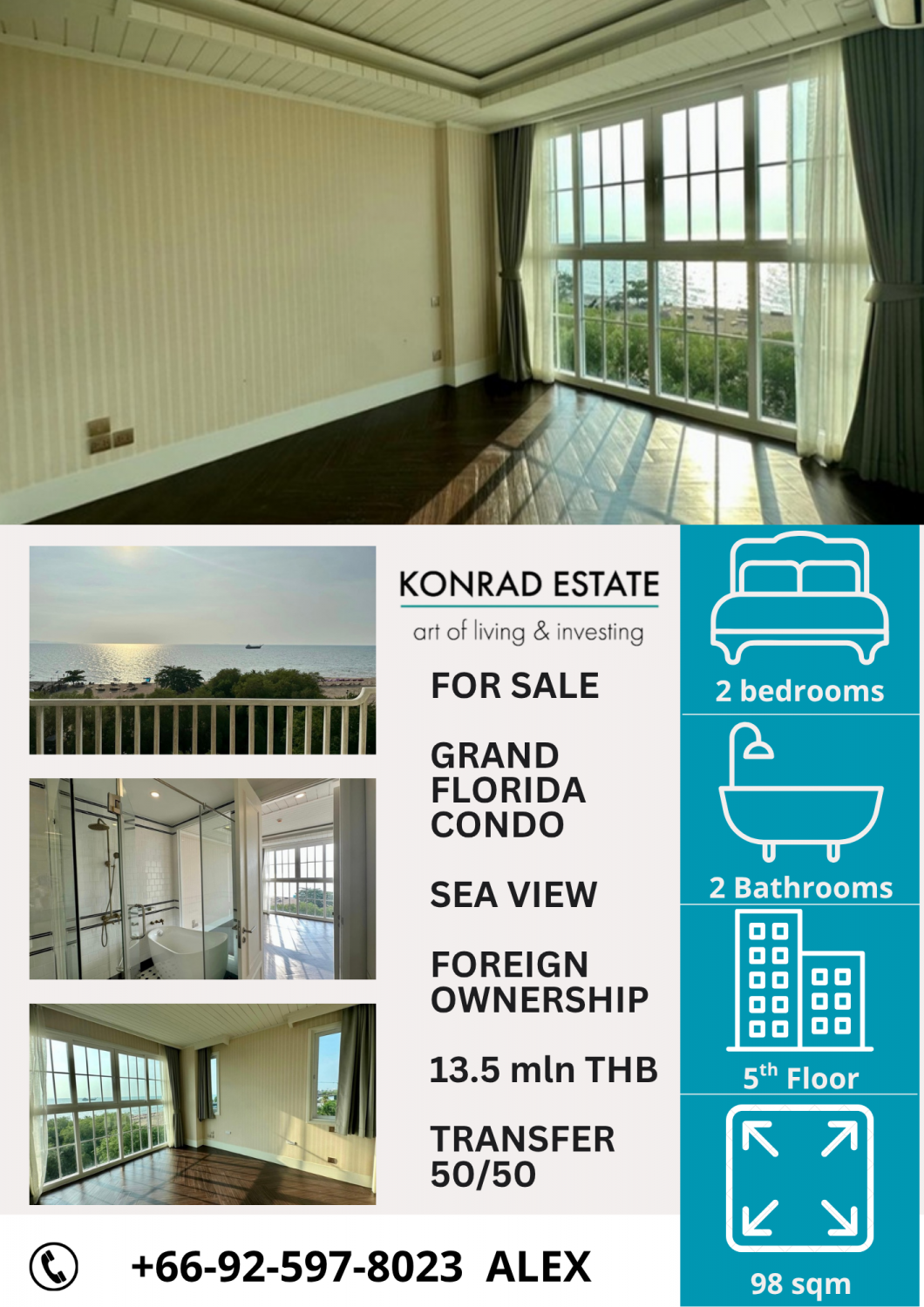Condo à Pattaya, Thaïlande, 2 chambres à Grand Florida № 129999