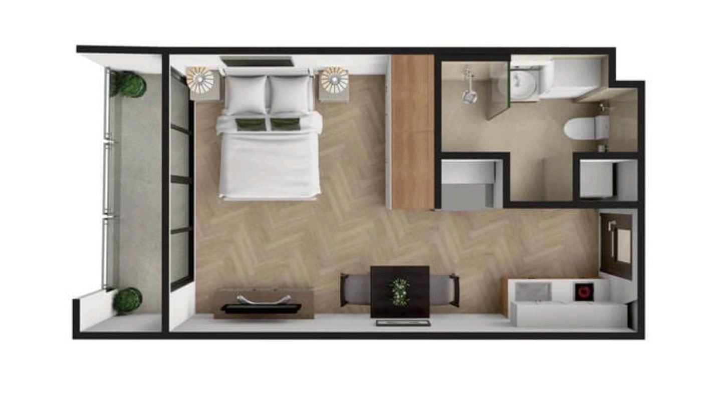 Chambre: StudioBains: 1Espace de vie: 28 m²
