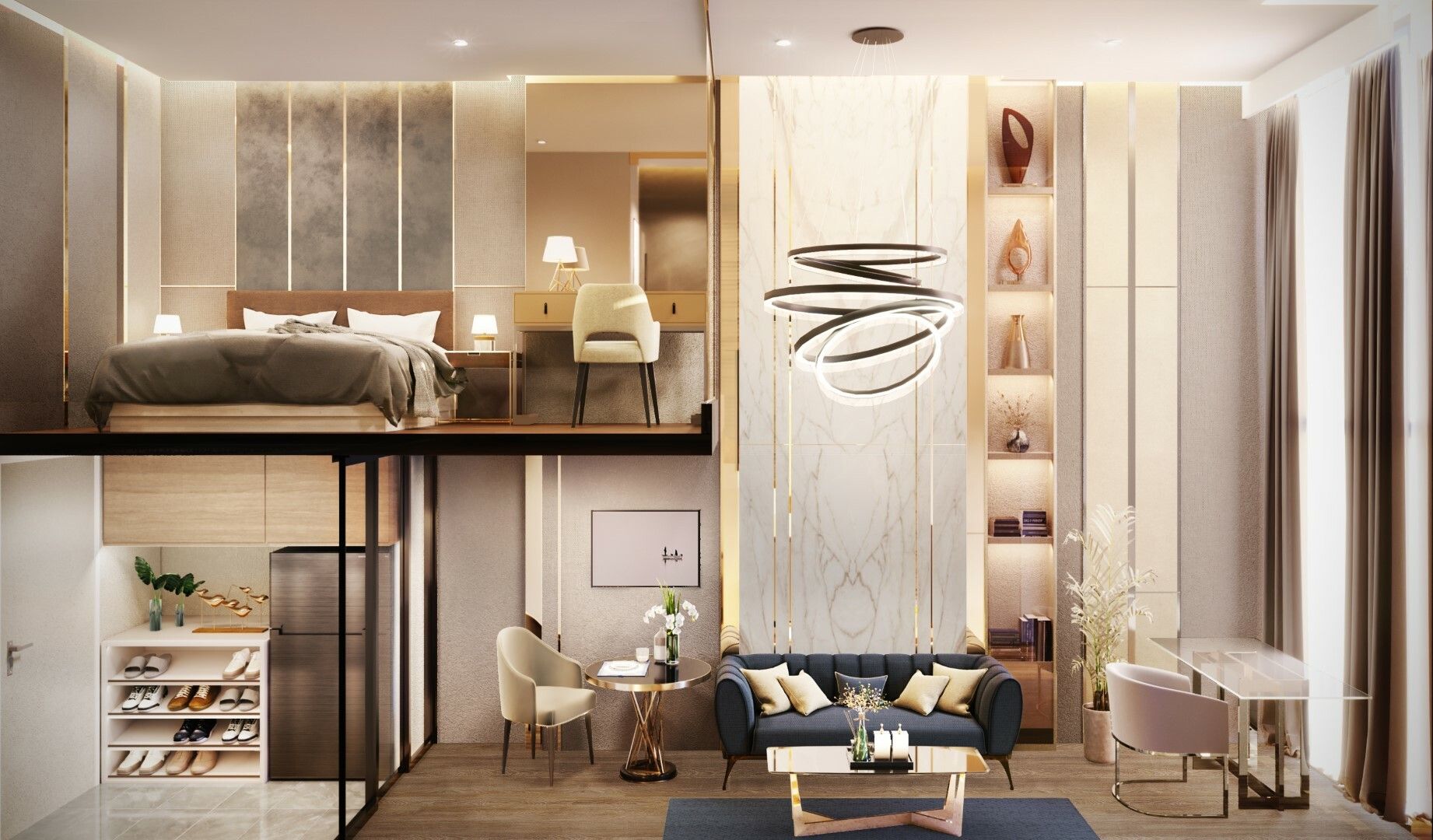 chambre à coucher: 1Bains: 1Espace de vie: 24.46 m²