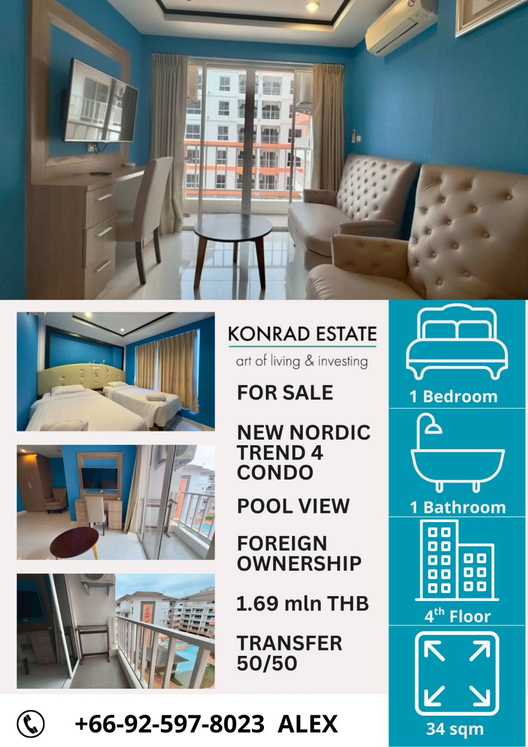 Condo à Pattaya, Thaïlande, 1 chambre № 160169