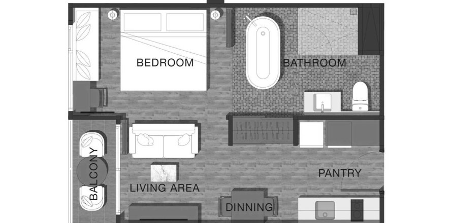 Apartment floor plan «TYPE 1BR», 1 bedroom in Proud Residence by Wyndham
