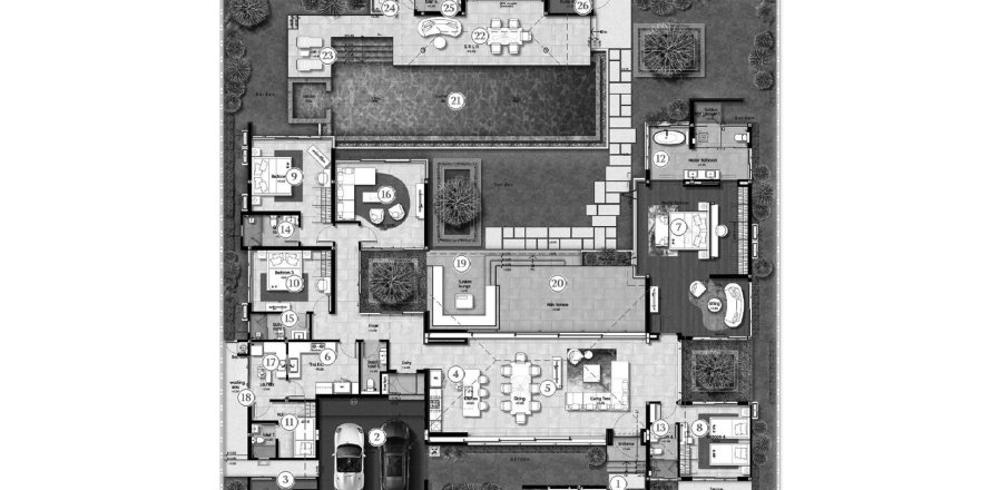 Villa floor plan «TYPE D», 4 bedrooms in Botanica Chalong Bay