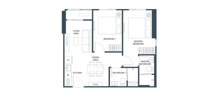 Apartment floor plan «TYPE 2D», 2 bedrooms in Flo by Sansiri