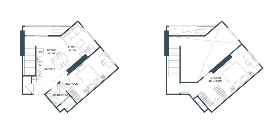 Apartment floor plan «TYPE 2C-L», 2 bedrooms in Flo by Sansiri