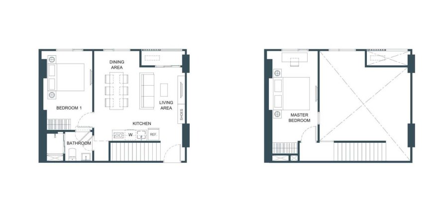 Apartment floor plan «TYPE 2A-L», 2 bedrooms in Flo by Sansiri