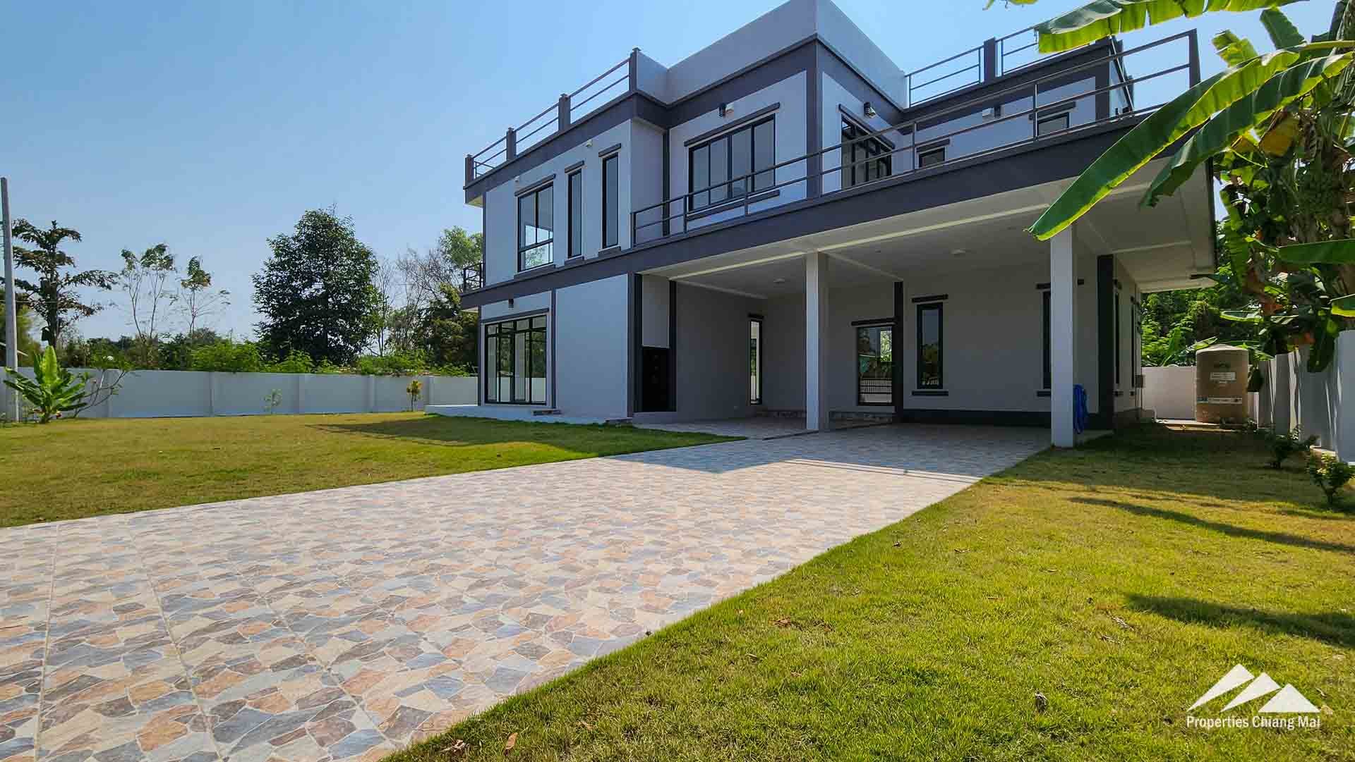 Land Size is 576 Sq.m (144 Sq.wah). There is approximately 330 Sq.m of yard space (additional to driveway) on the front and side. Lots of space for a swimming pool or other garden features on either side of the house.
