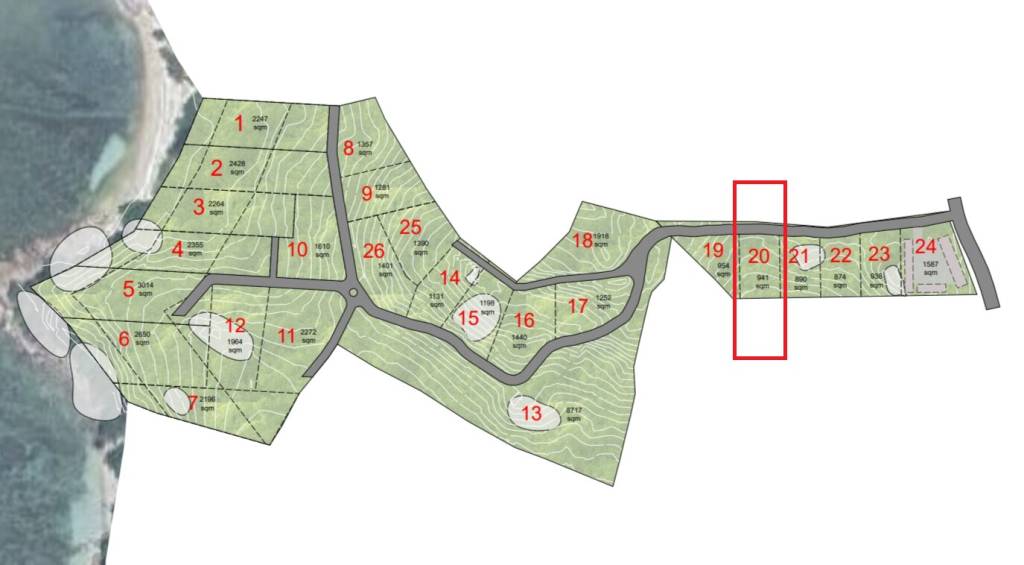 Plot 20, highlighted for its auspicious positioning within the project, offers future homeowners or investors the chance to craft their vision on a blank canvas. The estate, limited to 24 units, guarantees an intimate community setting. Revel in the meticulously designed road infrastructure, ensuring seamless access to and from your property. The topographic map underscores the plot's elevation contours, accentuating potential for breathtaking views and optimal land use.
