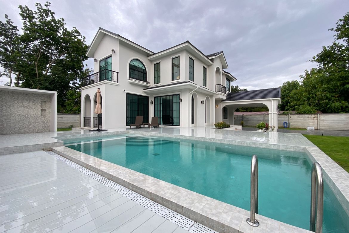 3 Bedroom House for rent in Huai Sai, Chiang MaiThis brand-new house is located just 6 minutes from Prem International School, 10 minutes from The Kad Farang Mae Rim, Mae Rim Plaza, and Makro, and approximately 40 minutes from Chiang Mai International Airport.The property sits on 250 square wah of land. The owner has never lived in the house, and it has been finished with great attention to detail. Each room offers generous space. Upon entering through the front door, you are welcomed into a high-ceilinged living room, an open dining area, and connecting windows between the kitchen and dining space, ideal for serving food. The Western-style kitchen is beautifully designed and fully equipped, with plenty of drawers and cabinets for storage, and a rear door providing access to the backyard.To the left of the living room is a room that can be used as an office, TV room, or additional guest bedroom, with direct access to the swimming pool.There is also a guest bedroom with an en-suite bathroom, a utilitystorage room, and access to a rear balcony.Upstairs, you’ll find an open living or study area with a small balcony, another guest bedroom with an en-suite bathroom, and a room that can be used as storage or a prayer room. At the opposite end of the upper floor is the master bedroom, complete with a walk-in closet and an en-suite bathroom featuring a lovely bathtub. The room has distinctive half-moon-shaped windows that frame serene views of rice fields and surrounding mountains.All furniture is brand new and of premium quality. The house is filled with natural light and easy to maintain. The swimming pool measures 4 x 8.5 meters, features a saltwater system, and includes lighting for nighttime use. The home also offers two covered parking spaces, is equipped with four CCTV cameras and has an electric gate. The rent will include the gardener fee, internet fee and pool maintenance.