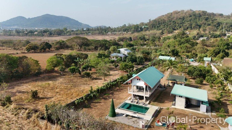 Discover a rare opportunity to own a beautiful two-story pool villa set on a generous 3 rai and 34 square wah of land in Bangsaray – a peaceful, private location just minutes from top attractions like Ramayana Water Park, Castello di Bellagio, Khao Chee Chan, and Ban Khong Wanphen Health Promotion Hospital.This well-designed villa offers :