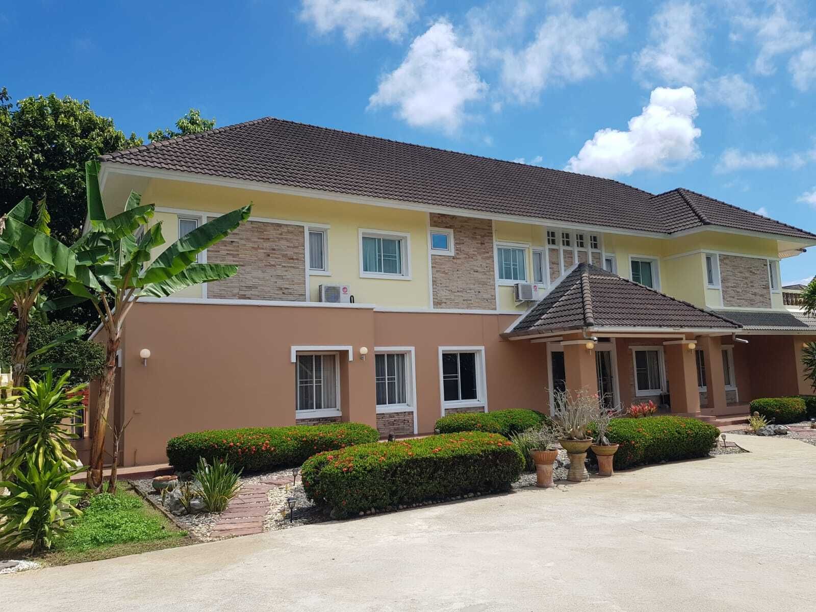 The land plot area is approximately 1 Rai ( 1,600 sqm) which is divided in 5 separate chanoots. On the land there is a nice well maintained garden with many grown fruit trees such as mangos, banana, lamyai, ramputan and lots of other trees. At the front entrance you will find a garage building suitable for atleast 3 cars, a generous sized maids domain (which also could be used as a guest house) and a storage facility. The land is fenced in and has an automatic gate.
