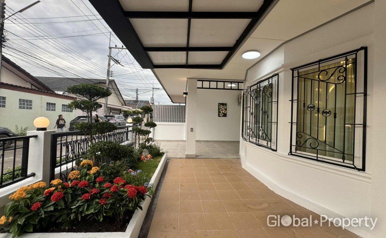 This single-storey twin house is for sale on a 40 square wah (160 sqm) land plot in Khao Talo, just a short distance from Boonsampan School.The house consists of three bedrooms and two bathrooms. There is parking space for one car inside the property and two cars in front. The home is located within a well-established housing project that offers a pleasant environment, a clean atmosphere and a friendly community.