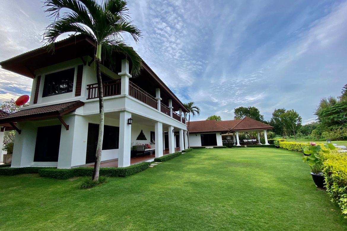 3 Bedroom House for sale in On Nuea, Chiang MaiWell-appointed 3 bedroom house in excellent condition for rent or sale fully furnished in Chiang Mai Highland golf course, about 45 minutes east of town. There is easy access to the local market, 711 and about 20 minutes to San Kamphaeng hospital.Set on over 200 sqw of land this L-shaped modern Colonial-style house overlooks the golf course. From the gate, there is a garage, a storage room, access to the Thai kitchen at the rear of the house, the washing area and the maid's quarter. To the right, there is access to the sitting room, guest bathroom, pantry and dining room with a view of the golf course. Going through to the main building, there is a covered terrace wrapped around the house with classic terracotta flooring, great for relaxation and entertaining. On this floor, there are 2 bedrooms sharing the bathroom. On the second floor, the master bedroom is spacious with its own sitting area, dressing room and ensuite with a bathtub. Also, this floor has a covered terrace to enjoy the view. The entire house comes with beautiful polished wood parquet flooring adding to the luxurious feel of the property. There is a maid quarter, a separate building for an office and a Sala at the front for outdoor dining or receiving guests. The house is tastefully furnished with handpicked furniture pieces and every window will offer a view of the green trees, golf course and the mountain. Needs to be seen to truly appreciate.The land size is 219 sqw and the annual common fee is 26,000 THB. The electricity bill and water bill will be paid to the golf course.There are 24 hours security, a spa and one of the best golf courses in Chiang Mai and a clubhouse