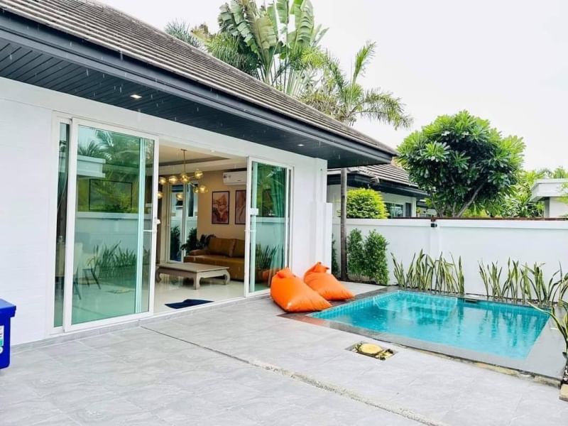 The villa is located in Jomtien, 2 km from Jomtien beach. The area is ideal for visits to Jomtien Beach or Pattaya, only a few minutes away. Relax and enjoy your little heaven close to Jomtien Beach and South Pattaya. Every house includes a private pool and is encompassed by abundant greenery in an exotic setting. It is ideal for families with children, as the estate compound offers a secure environment, and the location is nowhere near the hustle and bustle of downtown Pattaya.The villa is decorated and equipped with premium furnishings and fitted with modern facilities.
