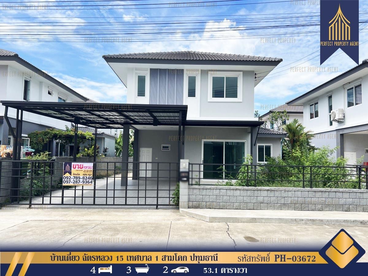 This property is a 140 SqM house with 4 bedrooms and 3 bathrooms that is available for sale. It is located in Sam Khok, Pathum Thani. You can buy this house for a base price of ฿3,990,000 (฿28,500/SqM).Contact the seller