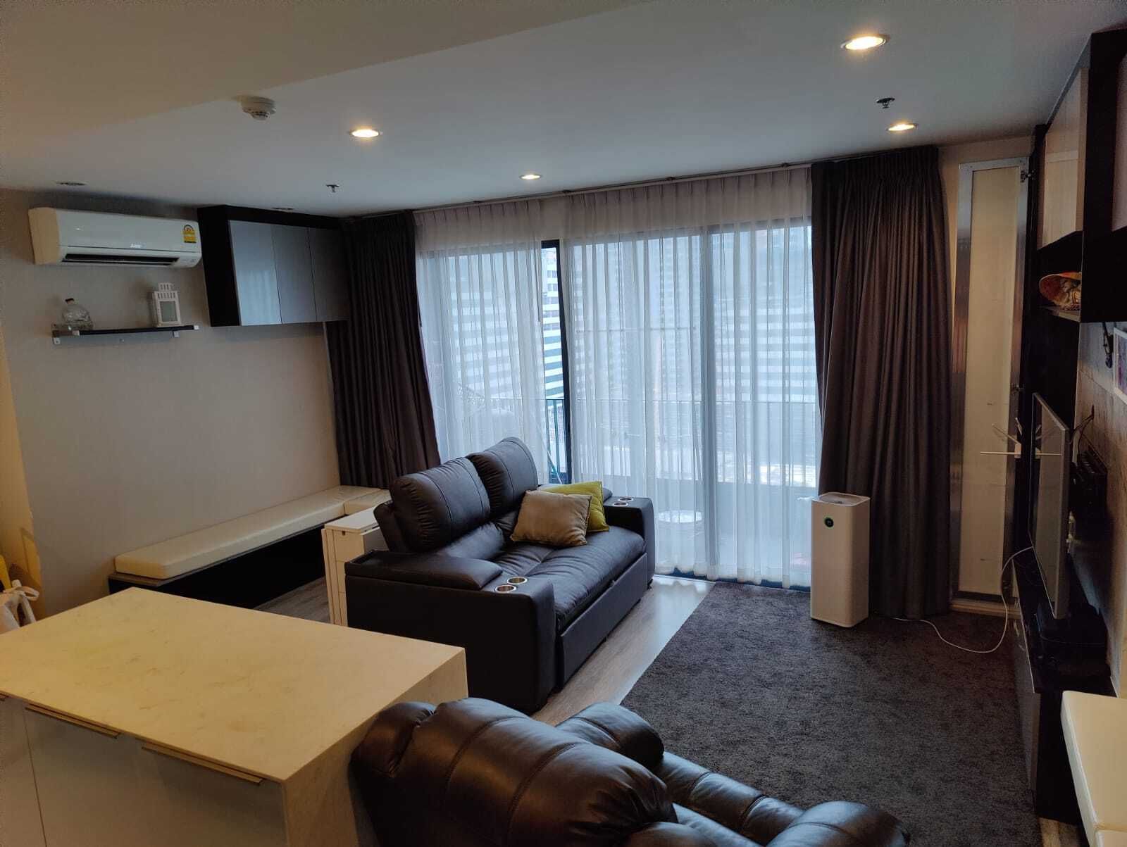 Corner Unit, one of the few, 23 floor.50m from BTS UdomSuk (skywalk from BTS you will not get wet)With this unit you have the right to own and park 3 car !You can see river and the city from balcony and bedrooms!Condo have amazing swimming pool and panoramic gym, party sharework area, meeting room, sauna and turkish bath, roof top panoramic garden for sunset and city view giant jacuzzi on top of the building.More then 800k baht of builtin furniture.Second room not have built in furniture, you can remove all (now is a kid bedroom) to be a different bedroom or extra room or studio.2 bathroom, one double with shower and bathtube.Builtin furniture on Master bedroom and on Living Room for optmiza space.Kitchen with Oven.