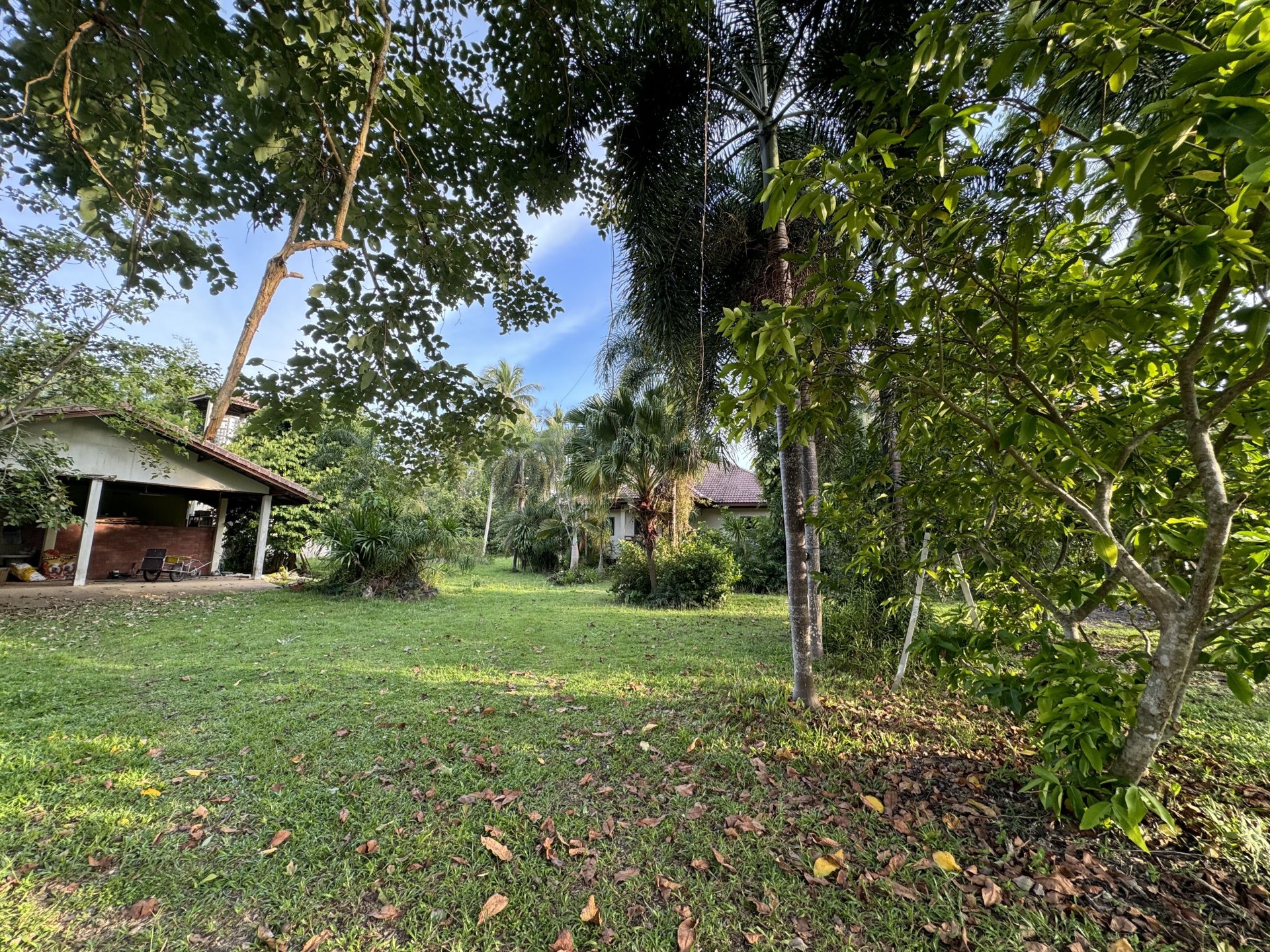 5 min to the beautiful quiet Lipa Noi Beach. Near the Sifa Market with Lotus , Mini Big C and 7/11. Many different sorts of tropical fruits trees in blooming garden, e.g. durian trees, mangosteen trees, pomelo trees, langsat trees, coconut palm trees….The main house has 3 bedrooms, 2 bathrooms one with shower and bath tub, one with shower. a dressing room, a living room, a large western-Style kitchen, fully equipped, 4 air-cons and a very large terrace.
