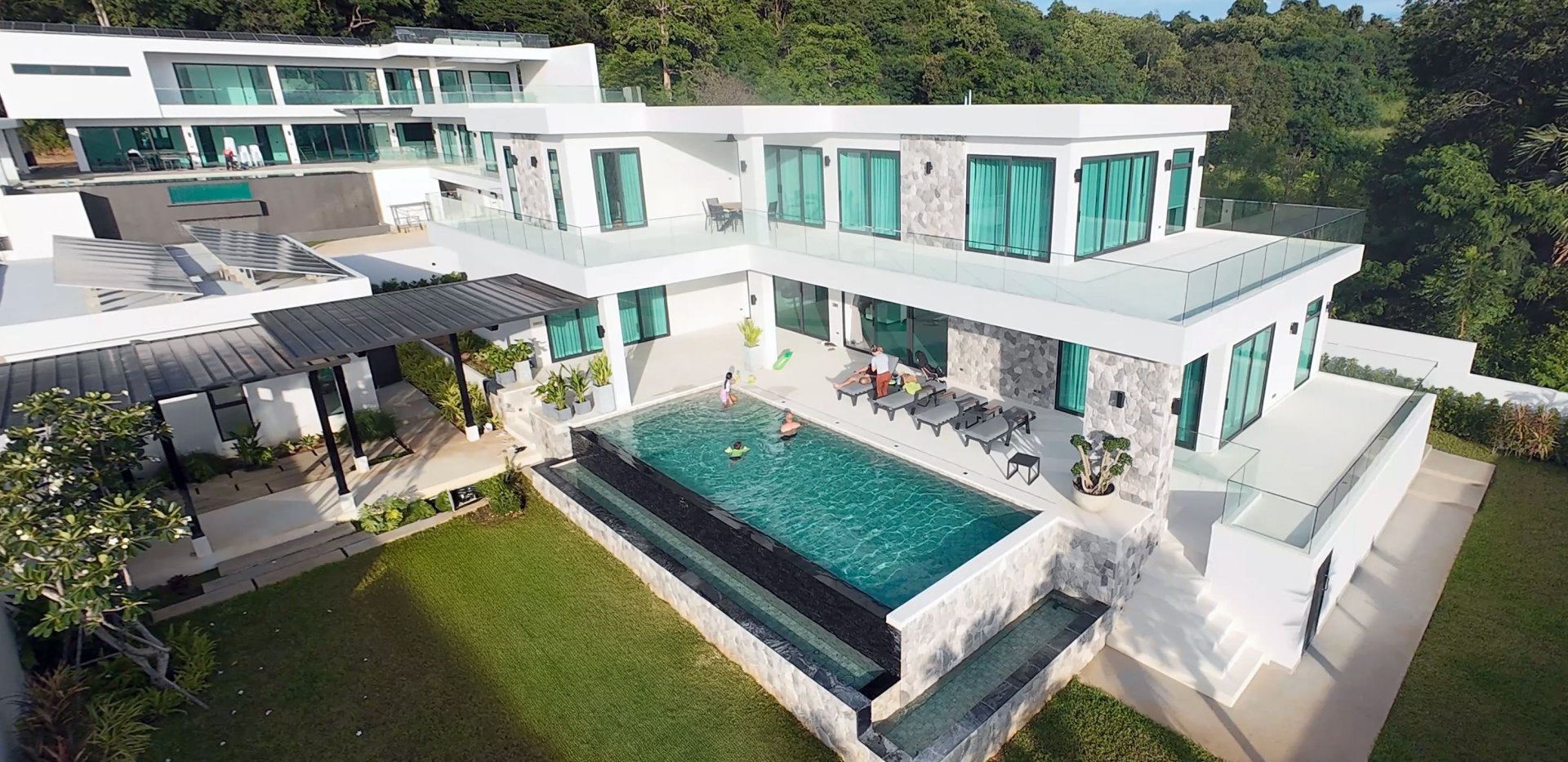 All rooms and bathrooms have plenty of space, high quality finishes and excellent amenities. The house is brand new yet has an already established garden, huge terraces to enjoy the views, and a large infinity swimming pool. It also features a temperature controlled wine room, dining room and is an ideal venue for entertaining your friends and family. House 6 has it's own sophisticated water supply system with a deep 300m underground waterwell providing the purest of underground mountain water. It has an advanced on/off/hybrid grid solar system and an advanced 3 phase electricity system capable of supplying two vehicles with electric charge whilst servicing the villa's power needs which includes 3 phase Daiken VRV air conditioning for year-round comfort.The View Estate is a boutique 8 villa development high up in Khao Khamin Mountainside (just 1 km in straight line from Rugby School), and all villas are private, and yet, offer breathtaking sunset views over Pattaya City. The Development is in a quiet natural environment and yet amazingly close to the Siam golf courses, International schools, Eastern Seaboard Industrial Estates and within 5 minutes drive to Motorway 7, 36 and 331. Pattaya is only 15 minutes drive away via easy motorway access.