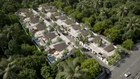 Private villas are located along a spacious driveway. Each villa features a thoughtful layout, private parking, and a private pool.