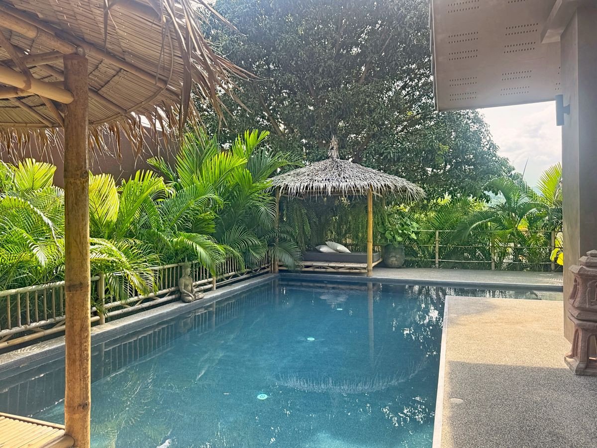 Set on the sun-drenched island of Koh Samui, in the vibrant yet refined enclave of Chaweng, this exquisitely designed 4-bedroom Tropical Contemporary villa captures the true essence of an elevated island retreat — where modern architecture meets the gentle rhythm of sea breezes and swaying palms.Positioned on a 455 sqm land plot with 265 sqm of thoughtfully designed living space, the residence unfolds with four spacious ensuite bedrooms and 4.5 beautifully appointed bathrooms, offering privacy and comfort in equal measure. The open-plan living area flows effortlessly into a sleek island kitchen, curated in a minimal contemporary aesthetic defined by clean lines, warm natural textures, and an atmosphere of understated luxury.