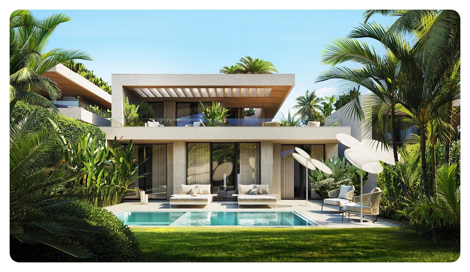 Rooms: 5Bedrooms: 4Bathrooms: 5Living space: 565 m²Distance to the sea: 7 kmD83 MONSTERA Nature – современные виллы с частным бассейном Details