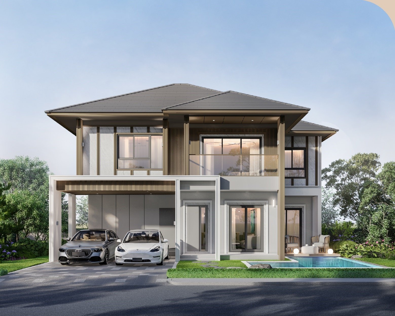 Bedrooms: 4Bathrooms: 4Living space: 204 m²Stylish New Modern Pool Villa At Kad Farang Hang Dong Details