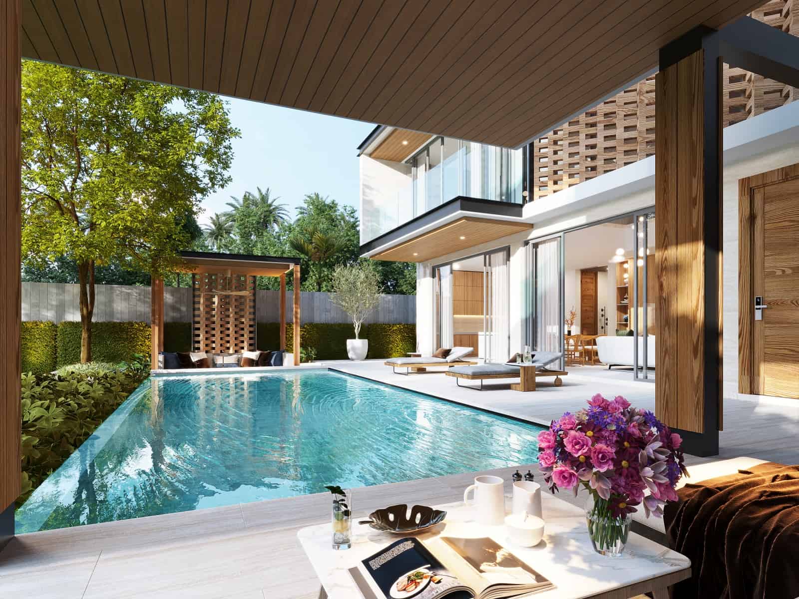 Bedrooms: 4Bathrooms: 6Living space: 458 m²Distance to the sea: 9.5 kmLaconic forms and impeccable details at Botanica Chalong Bay Details