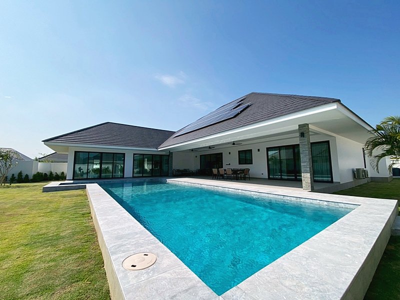 Property OverviewThis listing features a specific luxury pool villa currently available for sale within a private residential development in the Hin Lek Fai area of Hua Hin, close to Black Mountain Golf Club and Hua Hin International School.The photographs shown in this listing represent the actual villa currently offered for sale, and illustrate the construction quality, finishes, and architectural style delivered within the development. Other villas within the project are available from a lower entry price point and may vary in land size, layout, and specifications compared to the property displayed in the photos.