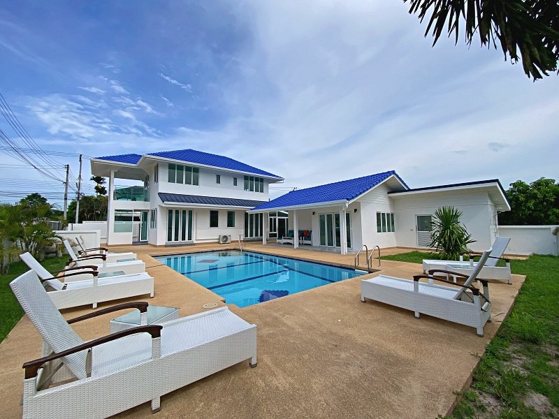 Renovated 3-Bedroom Pool Villa with Guesthouse & Mountain Views – Prime Soi 88 Location, Hua HinProperty Overview:Tucked away at the top of popular Soi 88 in Hua Hin, just 7 km west of the Marriot Hotel and Petchkasem Road, this fully renovated 3-bedroom, 3-bathroom private pool villa offers spacious living, smart design, and excellent rental potential. Situated on 824 sqm of private land with 278 sqm of total living area, the property includes a separate guesthouse, large games room, garage, and a lush garden with west-facing mountain views—perfect for entertaining or peaceful everyday living.Key Features:• Land Size: 824 sqm (Chanote title deed)