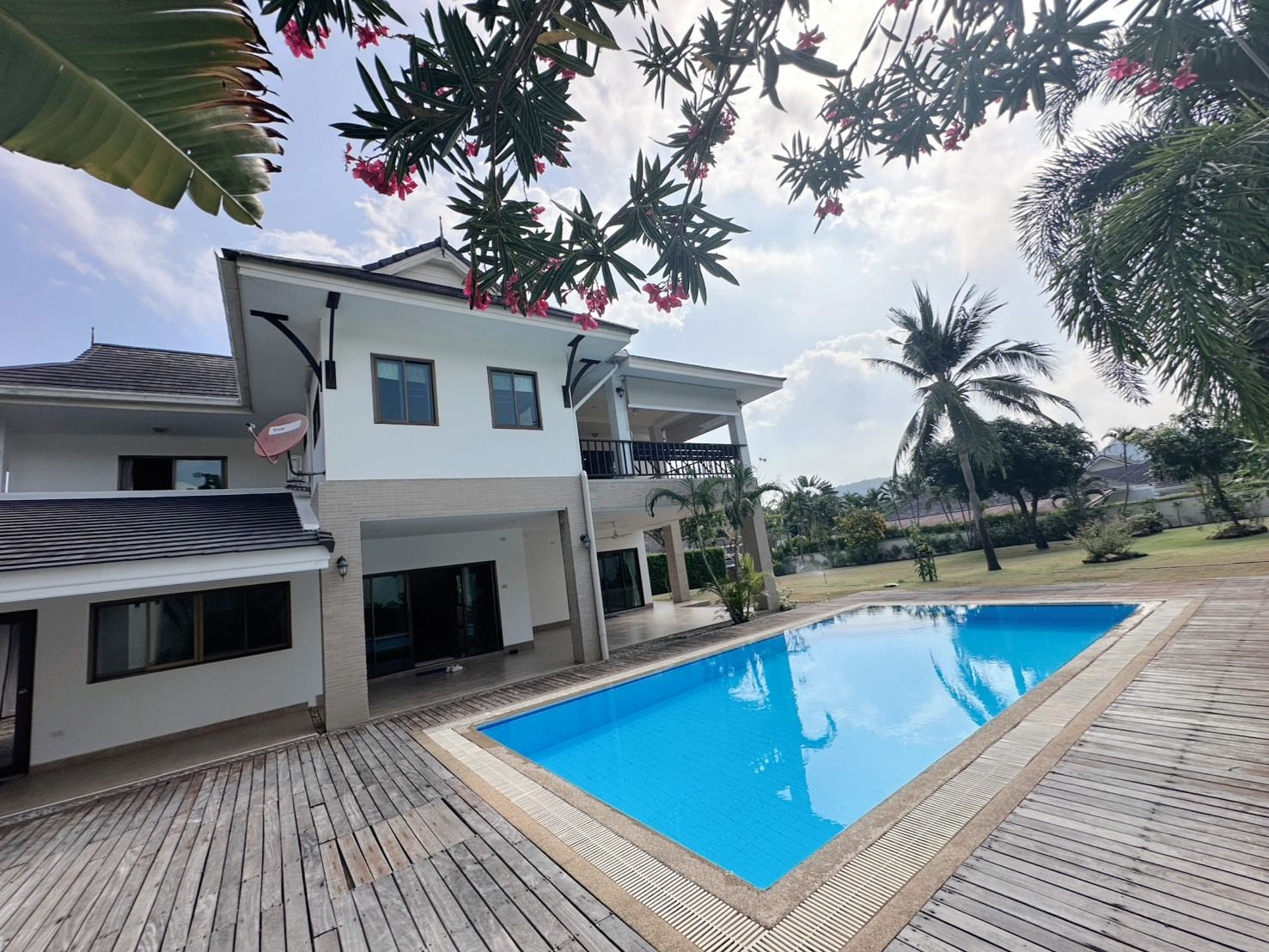 Excellent Location   • Located in a secure gated community with 24-hour security and CCTV • Only 12 minutes to Bluport Shopping Mall • 10 minutes to Khao Takiab and Sai Noi beaches • Easy access to Pranburi and Makro • Walking distance to bakery, Family Mart, and petrol station with 7-Eleven    Total Floor Area: approx. 342 sqm    Why This Property is Special   • Rare double land plot – great long-term investment • Large living space ideal for families or holiday home • Separate guest studio adds flexibility and value • Located in a quiet but convenient area close to beaches and city    A perfect home for those seeking privacy, space, and a high-quality lifestyle near Hua Hin.