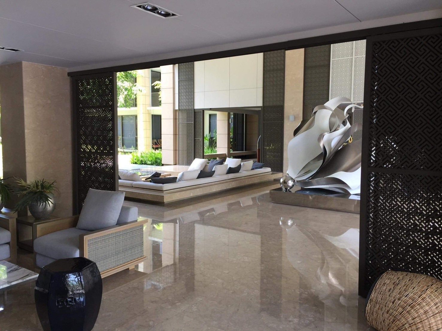 Residents have access to a large outdoor swimming pool along the beachfront, a fitness center, lobby area, landscaped gardens, direct beach access, parking, 24/7 security, and CCTV. The condominium provides a private, resort-style atmosphere.