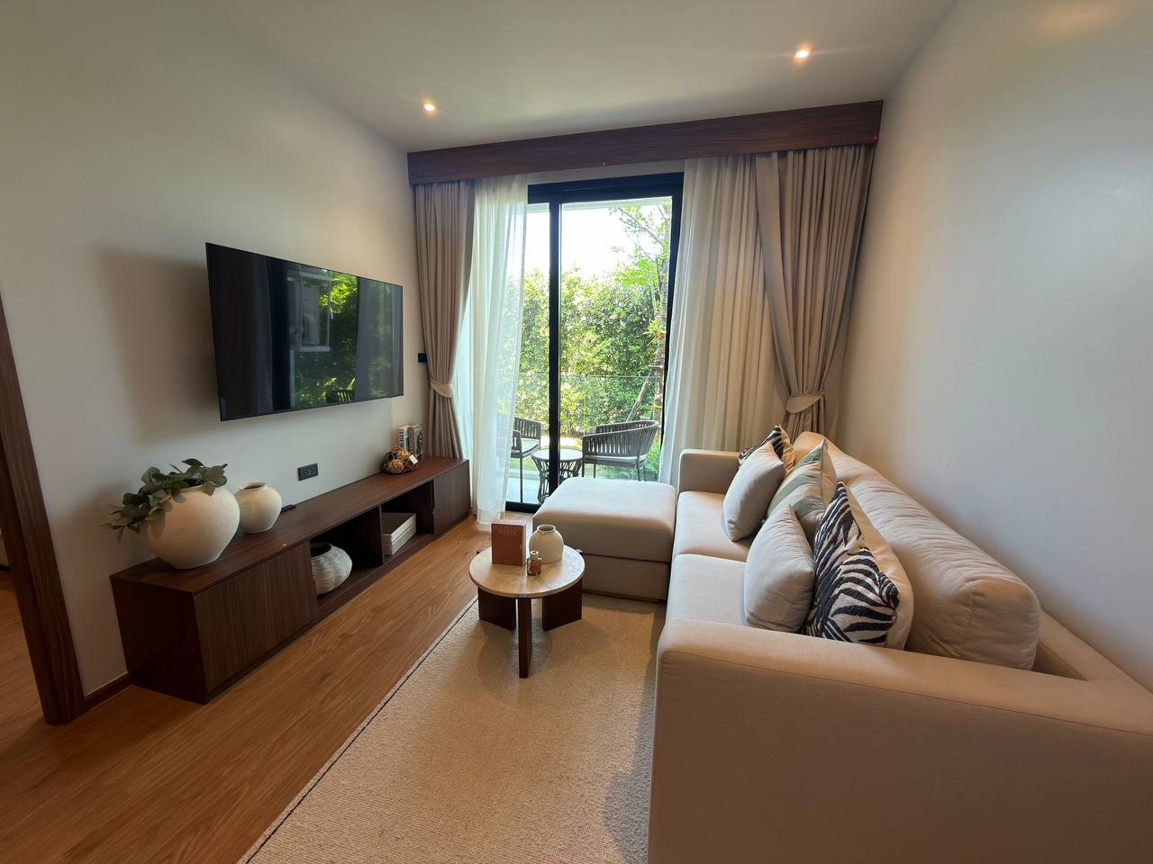 The project is a boutique complex designed in a modern tropical style, harmoniously blending with its natural surroundings. The low-rise buildings create a cozy and peaceful atmosphere. The development includes 8 buildings and 239 one-bedroom apartments ranging from 36 to 60 sqm.