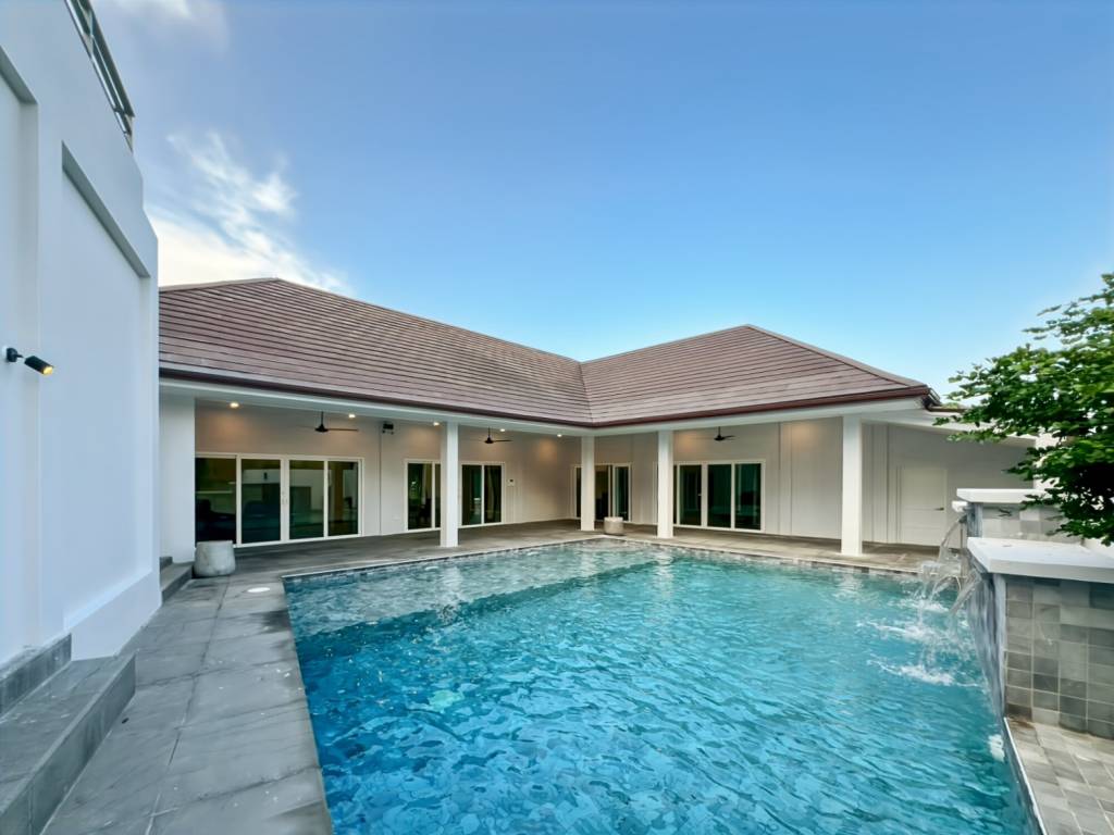 Modern 3-Bed + Office Pool Villa | The Heights 2, Hua HinThis sleek, single-story villa in Khao Tao offers 180 sqm of modern living on a generous 660 sqm pet-friendly plot. Designed for a seamless indoor-outdoor lifestyle, it combines minimalist interiors with expansive garden views.