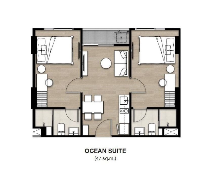 Bedrooms: 2Bathrooms: 2Living space: 52.16 m²