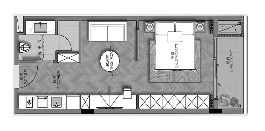 Планировка Квартиры «TYPE B1» 1 спальня в ЖК Ayana Heights Seaview Residence