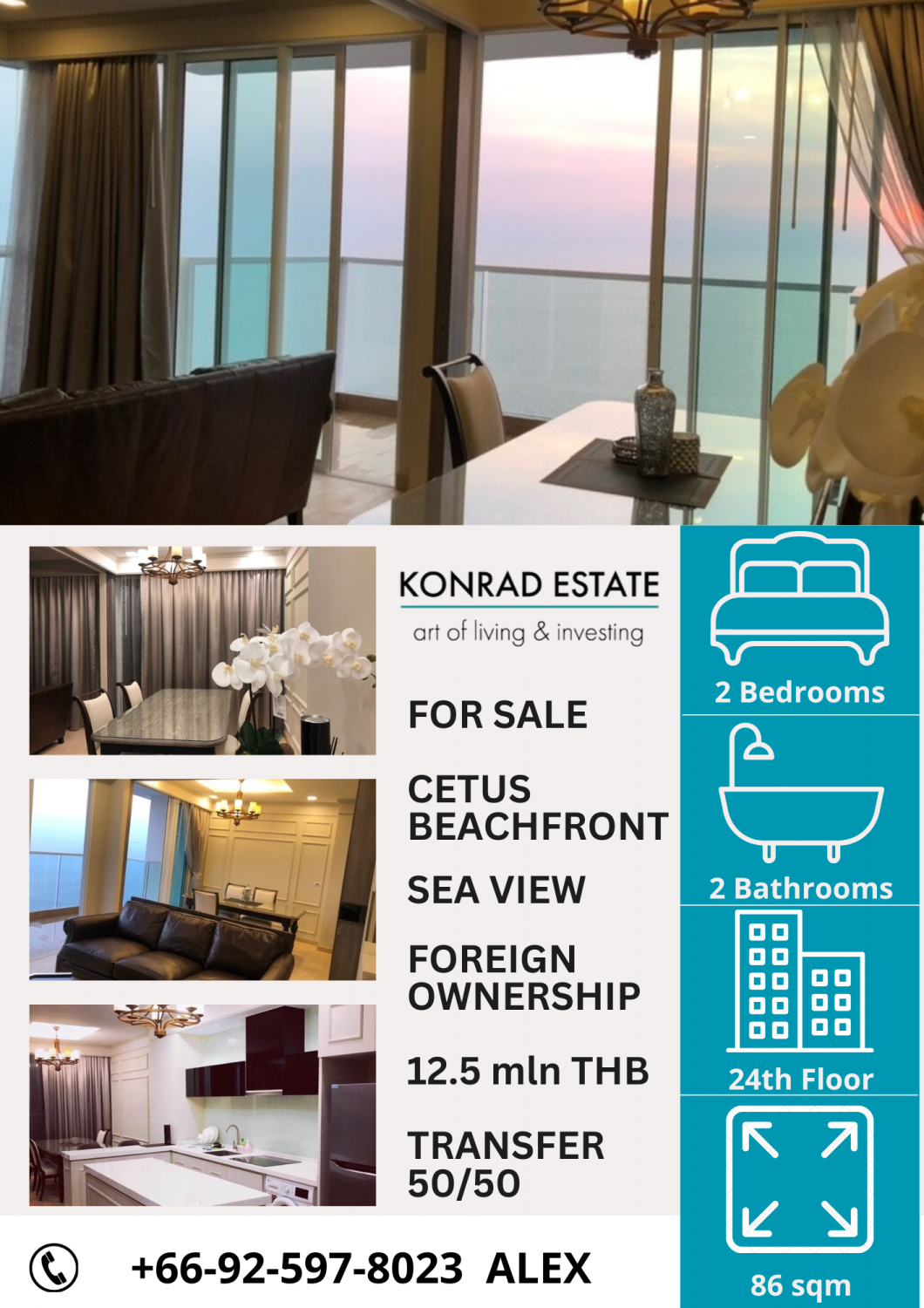 Кондоминиум с 2 спальнями в Паттайе, Таиланд в Cetus Beachfront № 126924