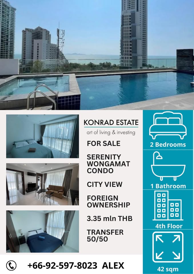 Кондоминиум с 2 спальнями в Паттайе, Таиланд в Serenity Wongamat № 130111