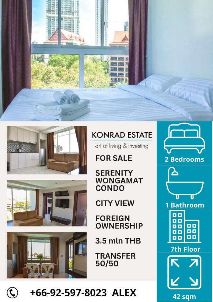 Кондоминиум с 2 спальнями в Паттайе, Таиланд в Serenity Wongamat № 130112