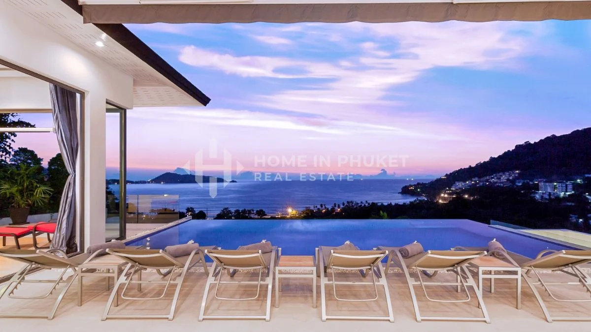 Эта потрясающая современная вилла с 6 спальнями и видом на океан расположена на склоне холма в северной части залива Патонг в Калиме.