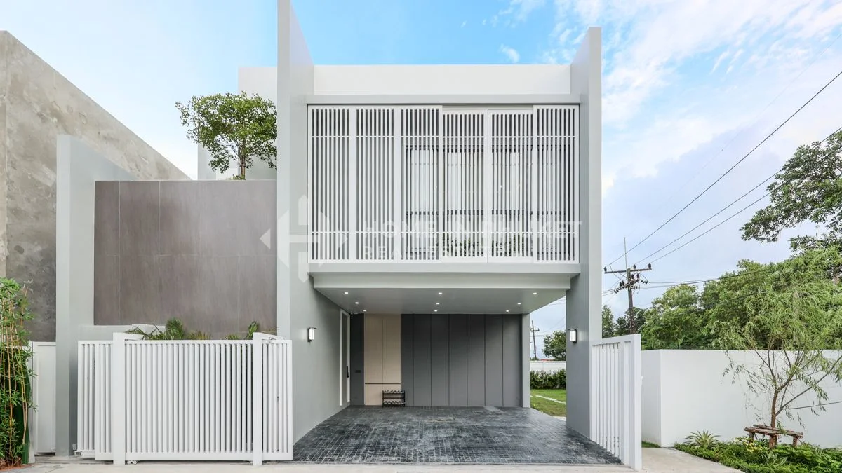 Эта 2-этажная вилла с 4 спальнями и 4 ванными комнатами является частью комплекса Larimar Villas в Чалонге, район Муэанг Пхукет. Общая площадь виллы составляет 338,77 кв.м на участке 240 кв.м. Вилла выполнена в элегантном современном стиле, с нейтральными тонами и преобладанием бело-голубой цветовой гаммы, что создает открытую и расслабляющую атмосферу.На первом этаже расположены просторная гостиная и столовая, плавно переходящие в полностью оборудованную кухню с большим кухонным островом (counter). Дополнительные удобства включают комнату для прислуги с ванной комнатой, прачечную, кладовую, гостевой санузел и крытую парковку на 2 автомобиля. Открытое пространство включает частный бассейн размером 8,5 x 2,6 м, летний душ, террасу со обеденной зоной и шезлонгами, идеально подходящую для отдыха и приема гостей.
