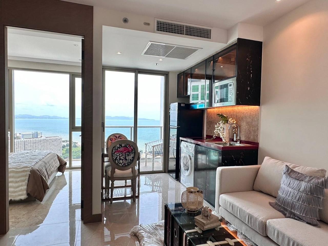 Riviera Ocean Drive — это 43-этажный жилой комплекс класса люкс с дизайнерскими интерьерами и высоким уровнем сервиса. Все апартаменты сдаются с полной отделкой и меблировкой. Из окон открываются захватывающие панорамы моря, города и холмов Пратамнак. Проект отмечен международными премиями в сфере недвижимости.