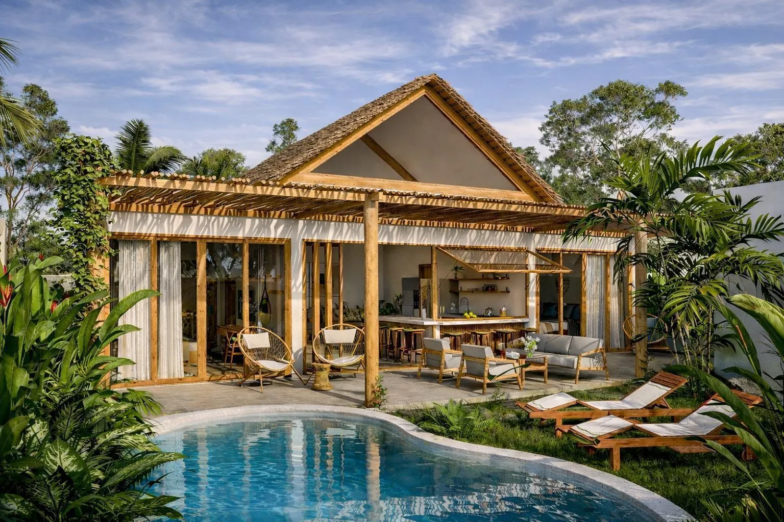 - Общая зона с бассейном