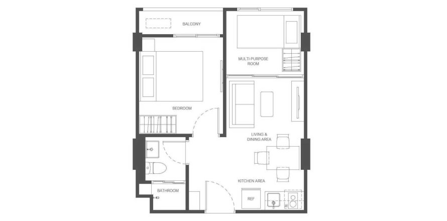 Планировка Квартиры «TYPE 1F» 1 спальня в ЖК The Base Ratchada 19