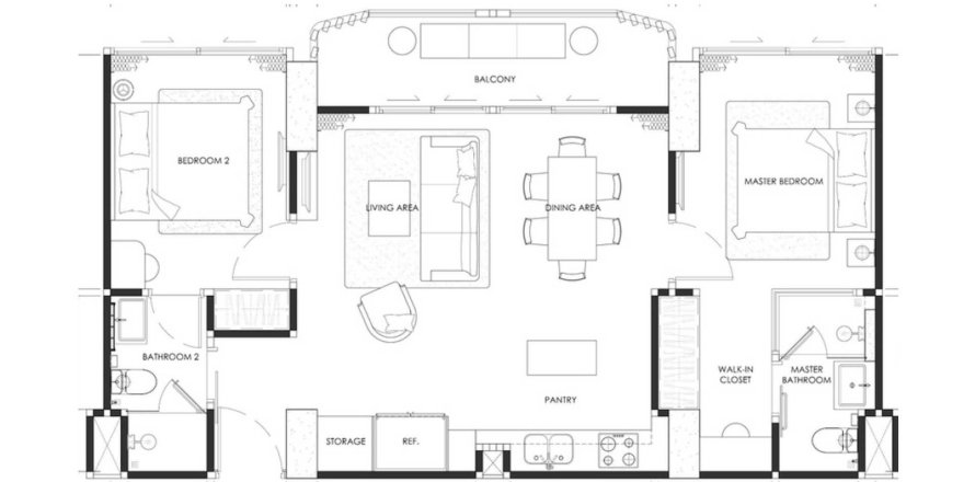 Планировка Квартиры «2BR» 2 спальни в ЖК The Embassy Life